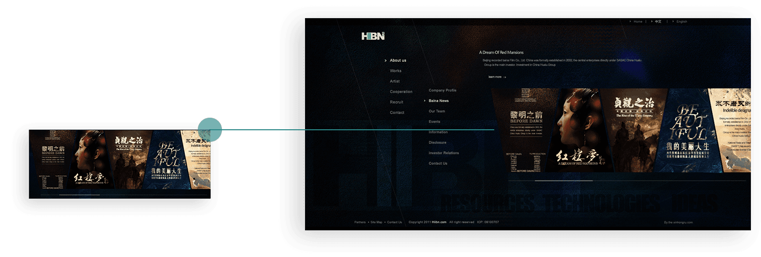 首頁banner進行藝術(shù)化創(chuàng)作,通過輪播切換的方式展示華錄百納的知名作品,以作品帶動品牌,強化企業(yè)品牌價值