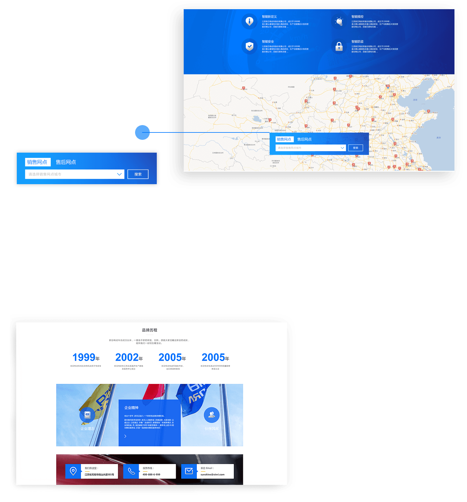 新日電動車官網(wǎng)調(diào)取百度地圖實(shí)時數(shù)據(jù),通過標(biāo)簽定位的方式,實(shí)現(xiàn)銷售網(wǎng)點(diǎn)、售后網(wǎng)點(diǎn)的查詢,極大的方便了用戶,提升了服務(wù)質(zhì)量和銷售渠道。